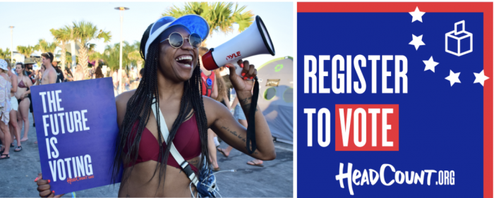 Your Vote = Your Voice. It just takes two minutes to use your voice. Check your status and get registered to vote today with HeadCount.Org and check that you’re properly registered. HeadCount is a non-profit that combines activism + music + culture to mobilize people like you to vote. #TheFutureIsVoting.