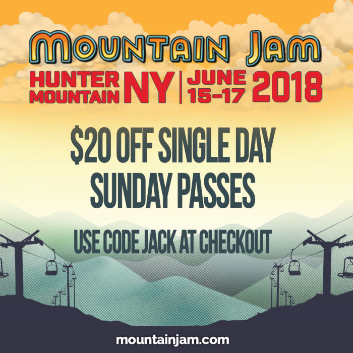 Come for the day to see Jack Johnson play Mountain Jam Music Festival on Sunday, June 17th! Head to mountainjam.com and enter "JACK' at checkout for $20 off a single-day Sunday ticket. While supplies last!
